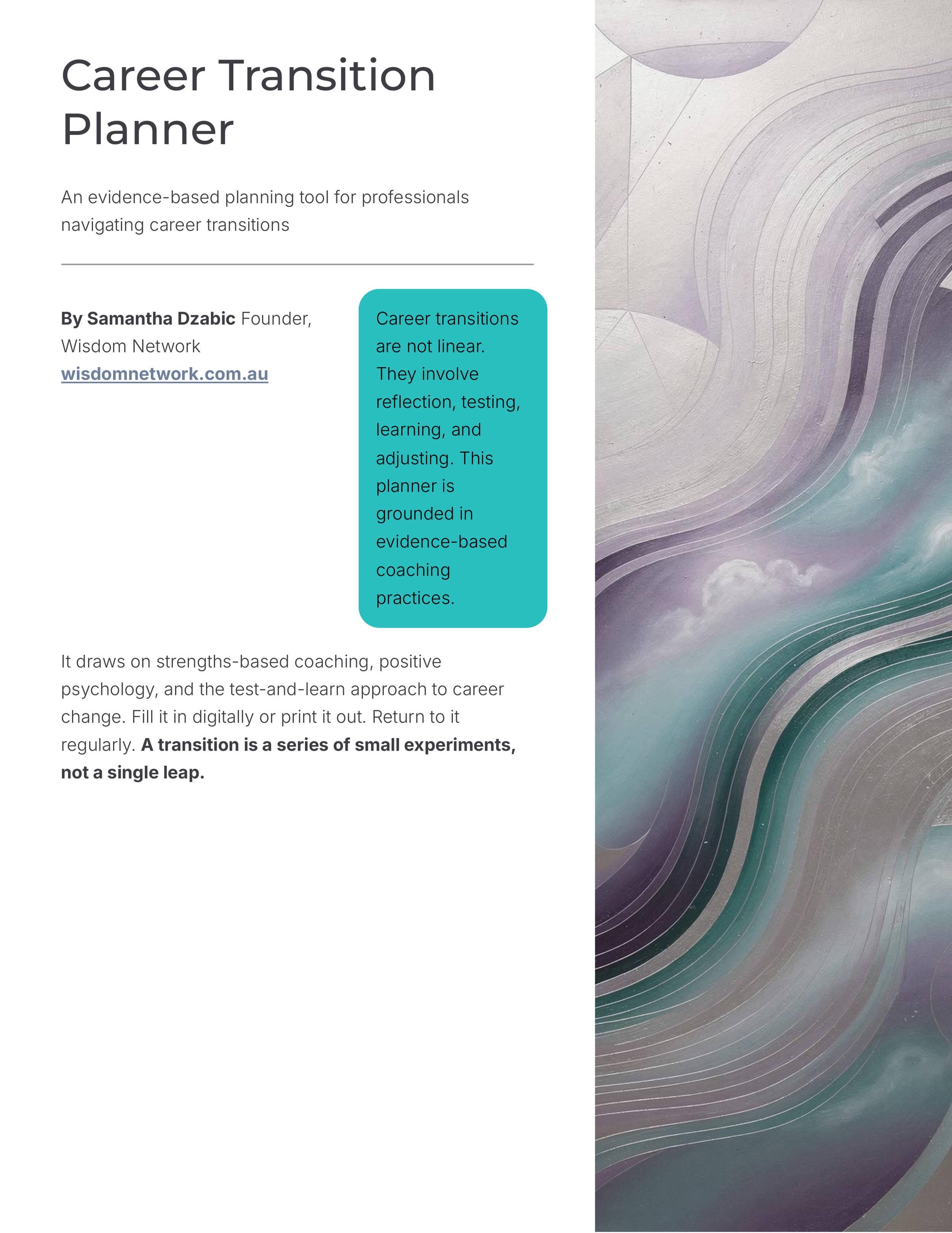 A practical planning tool grounded in evidence-based coaching. Map your energy, assess your readiness, and build a 90-day action plan to move forward with confidence.